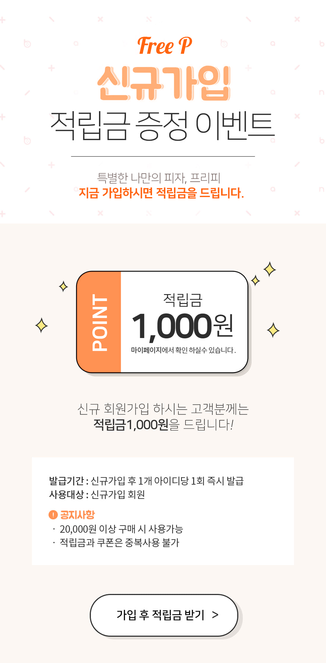 고객후기 이벤트 1:1문의 Free P Pizza 신규가입 이벤트! 2022-03-10 조회 167 주의사항 상기 이벤트는 내부사정에 의해 조기 종료될 수 있습니다. 쿠폰 지급은 다음날 오전 9시 이후 순차적으로 진행되며, 마이 페이지 내 "쿠폰/적립금" 페이지에서 확인 가능합니다. 2022년 2월 16일(수) 오전 8:59 전에 가입이 완료된 대상에 대해서만 쿠폰이 발급됩니다. 본 이벤트는 본사에서 진행하는 프로모션으로 가맹점에서 사용가능한 포인트입니다. 대한민국 계정을 보유한 만 12세 이상의 사용자만 참여할 수 있습니다. 쿠폰 지급을 위해 사용자 정보를 입력해 주세요. 잘못된 정보로 인해 지급 누락 또는 수령 불가인 경우 보상하지 않습니다. 그 외 자세한 내용은 공지사항의 이벤트 공식 규정을 참고해 주시기 바랍니다. 이벤트에 대한 자세한 문의사항은 커뮤니티의 1:1문의로 문의해 주시기 바랍니다. 이전 다음 주문부터 결제까지 Quick 하게! 목록