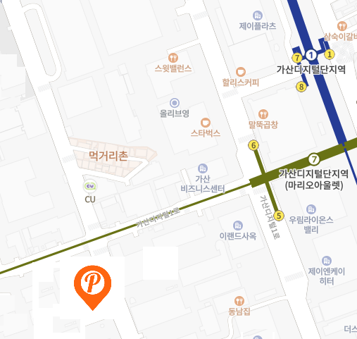 - 가산디지털단지역 6번 출구로 나와서 도보 약 520M(10분 소요)